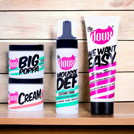 Includes: -Mousse Def Texture Foam -We Want Easy Texture Tamer Leave In -Big Poppa Define...