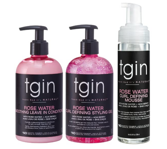 Tgin The Styling Package: Rose Water Leave In Conditioner, Defining Gel and Mousse Tgin Rose...