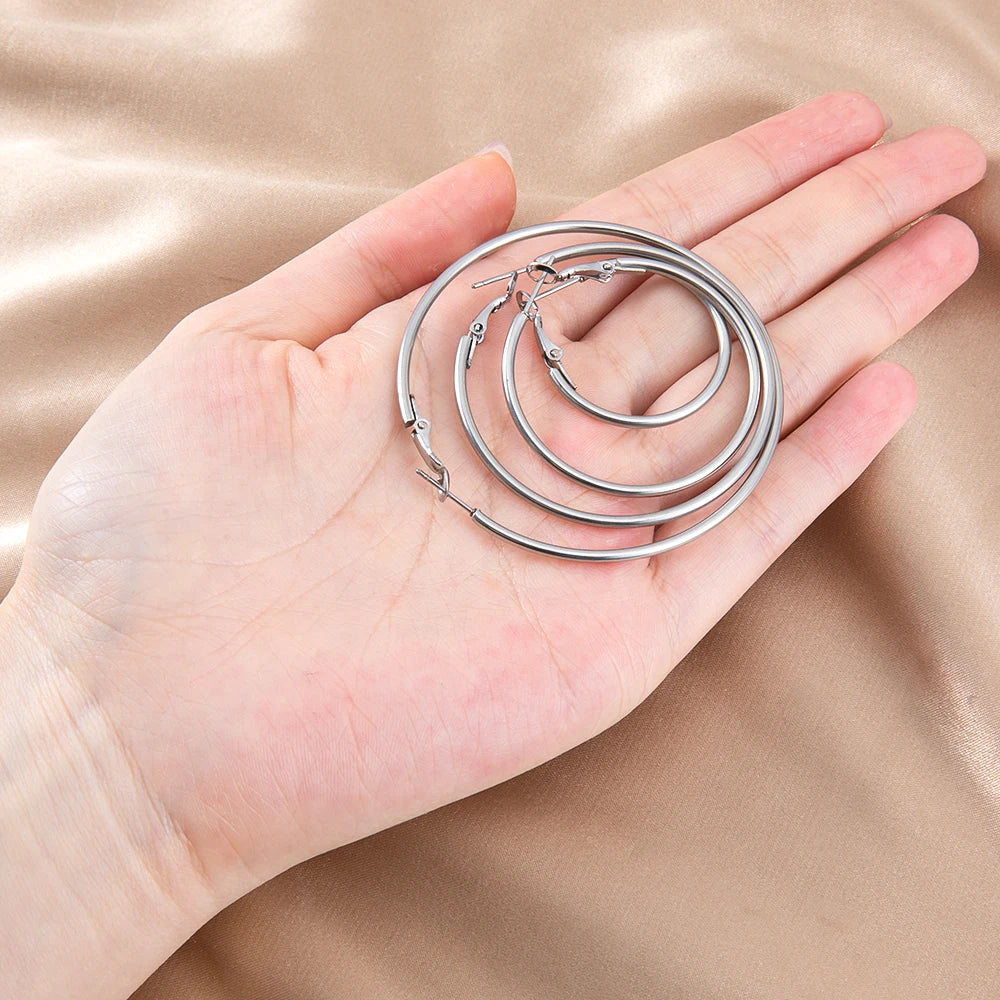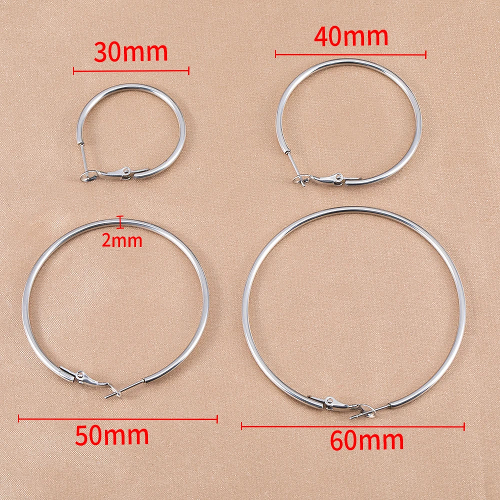 2pcs Stainless Steel 30/40/50/60/70mm Round Big Circle Hoop Earring Steel Color Gold Color Component for DIY Jewelry Accessories