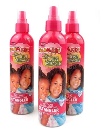 African Pride Dream Kids Olive Miracle Instant Moisture Detangler (3 Pack), Restores Natural Coils & Curls, Adds Moisture & Controls Frizz, 8 Oz