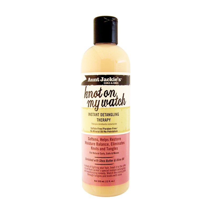 Aunt Jackie's knot on my watch instant detangling therapy have no fear your hair has its own personal super hero, guarding against tangles, knots and unruly, tresses with the power of its silky slip, knot on my watch helps the comb glide through hard-to-manage hair, leaving it tangle-free and protected from breakage, while restoring a healthy moisture balance.