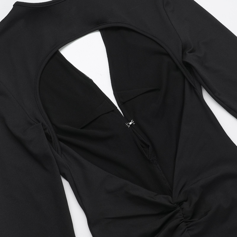 Element: Backless,Cutout,Zipper,Ruched,Ruffle