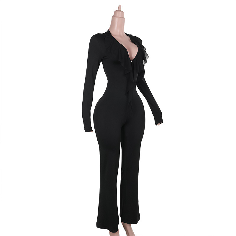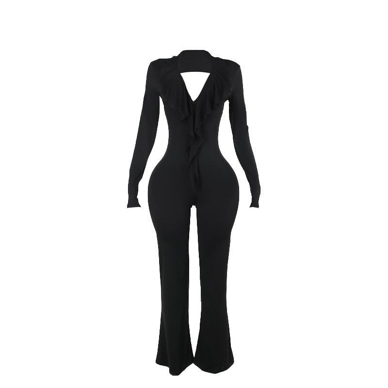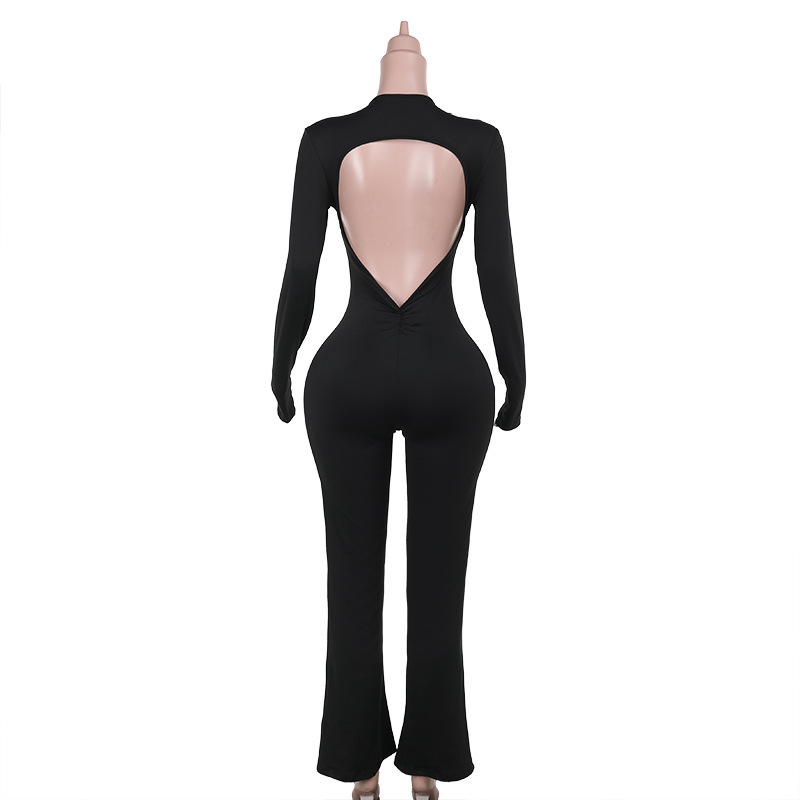 Autumn Street Cool Sexy All Matching Deep V Plunge neck Backless Jumpsuit Women