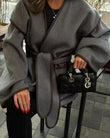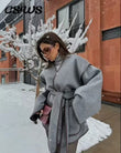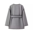 Autumn Women Clothing Graceful Fashionable Belt Contrast Color Reversible Woolen Coat