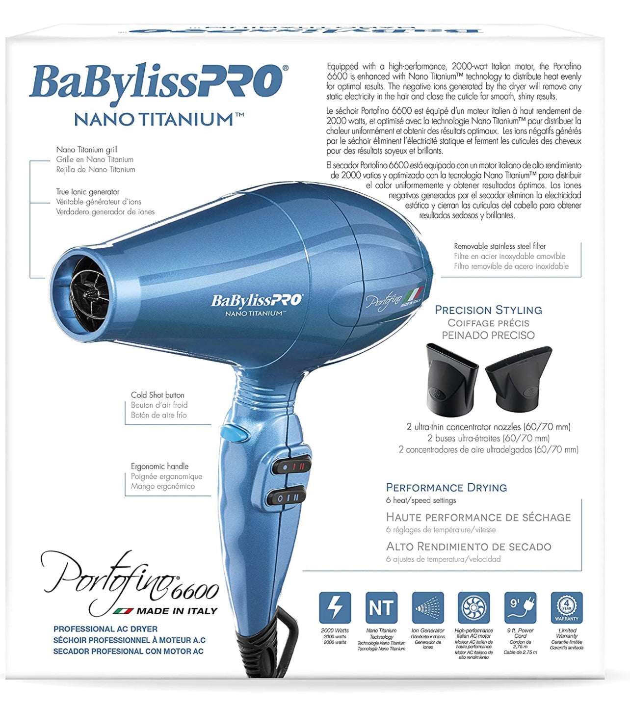 BaBylissPRO Nano Titanium Italian Performance Hair Dryer - Professional Quality 2000 Watt Blow Dryer