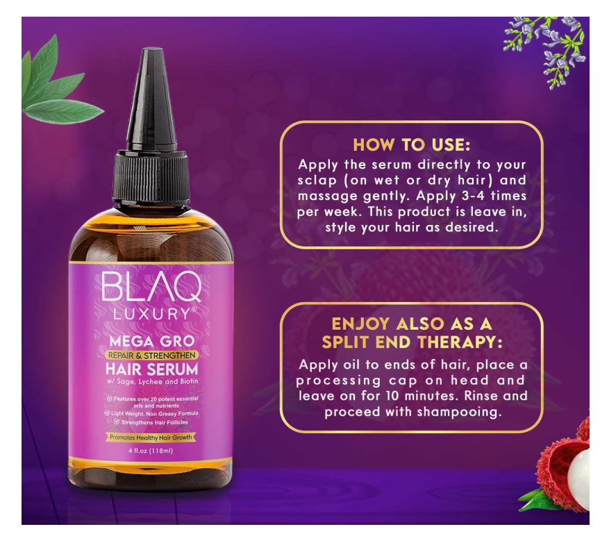 Blaq Luxury Hair Growth Biotin Serum, Shampoo and Conditioner Set - Split End Treatment For Women - Dry & Itchy Scalp Serum - With Biotin