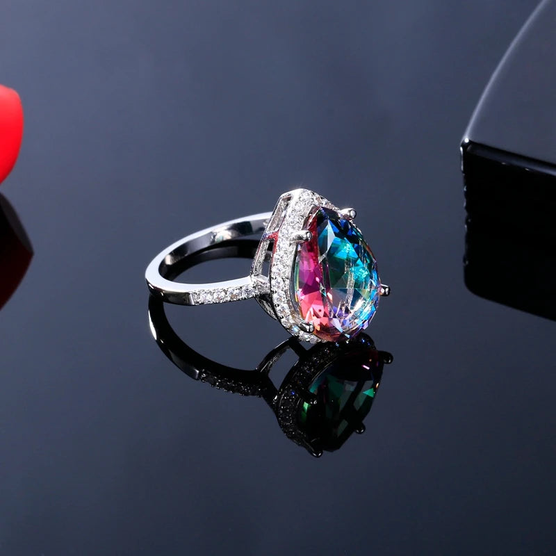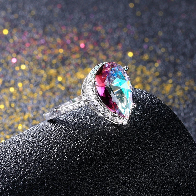 Ladies Jewelry S925 Silver Ring Mystical Rainbow Topaz Dripping Ring Wedding Jewelry Party Valentine's Day Ring Gift Wholesale