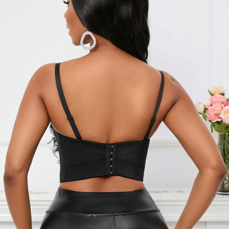 Mesh Butterfly Rhinestone Boning Corset Bra Strap Dark Sexy Bra Vest