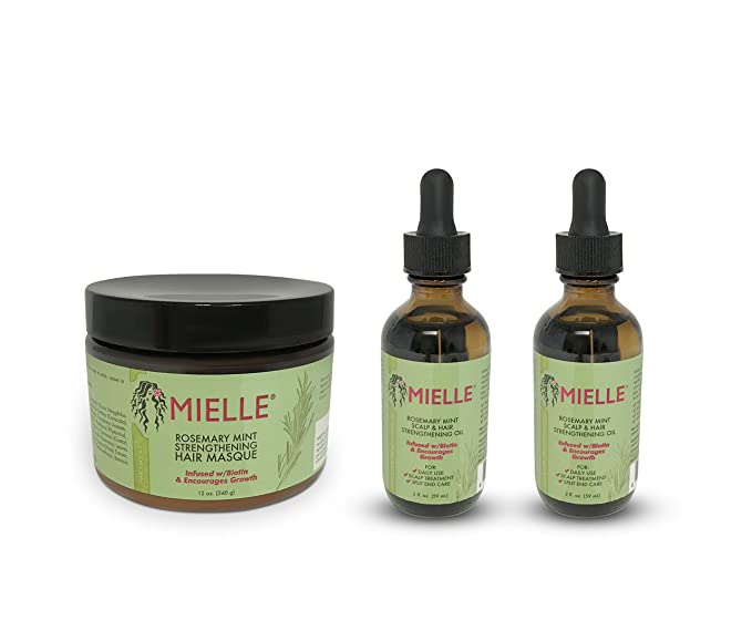 Mielle Organics Rosemary Mint Growth Oil 2 oz (Pack of 2) & Strengthening Hair Masque 12 oz