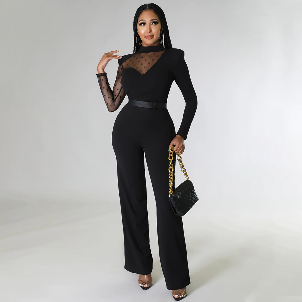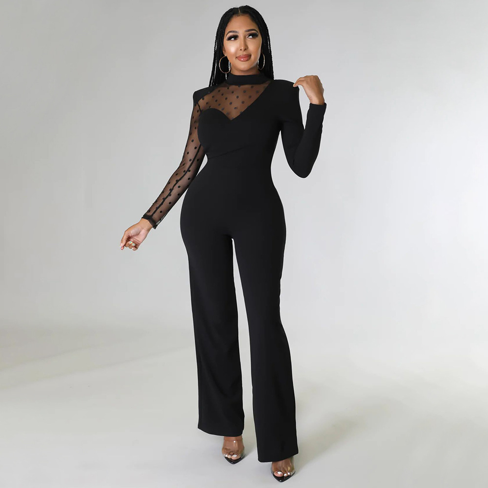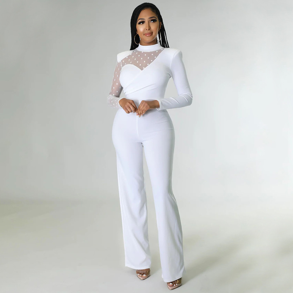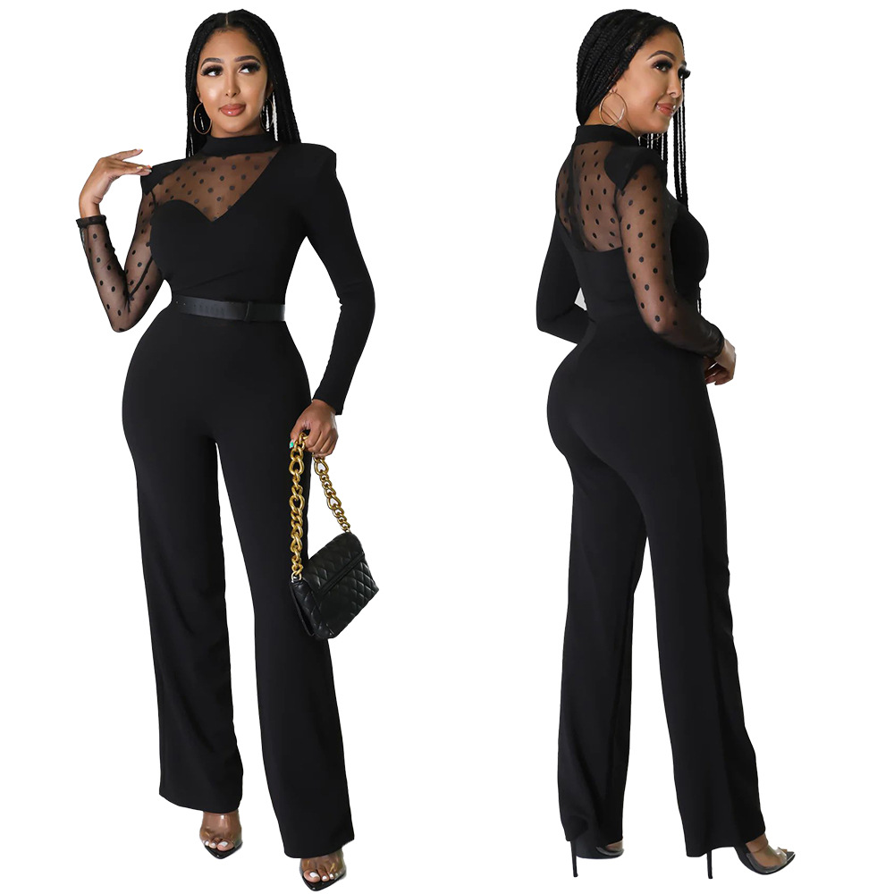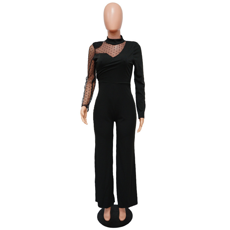 Spring Women Clothing Jumpsuit Solid Color Casual Jumpsuit Solid Color Straight Leg Pants