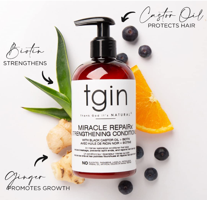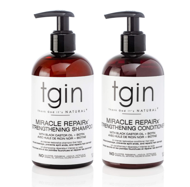 Tgin Miracle RepaiRx Strengthening Shampoo and Conditioner Duo for Curly, Coily and Wavy Hair, with Biotin and Black Castor Oil, Repairs and Restores Damaged, Color-Treated Hair, 13 oz (Set)