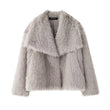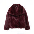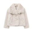 HH Women Fashion Cropped Faux Fur Jacket Coat Long Sleeve Front Snap-button Female Outerwear Chic Lapel Collar Thick Coat