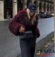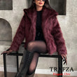 TRAFZA-Women Fashion Winter Solid Big Lapel Coat Faux Fur Coat Jacket New 2025 Autumn Winter Slouchy Burgundy Black Gray Coat