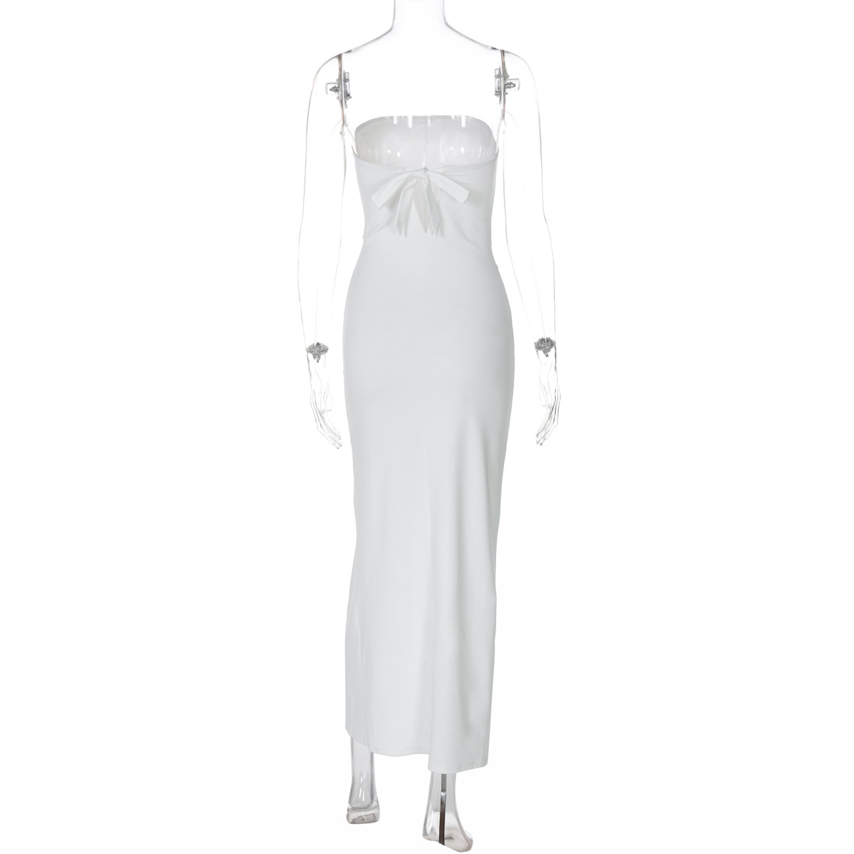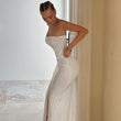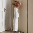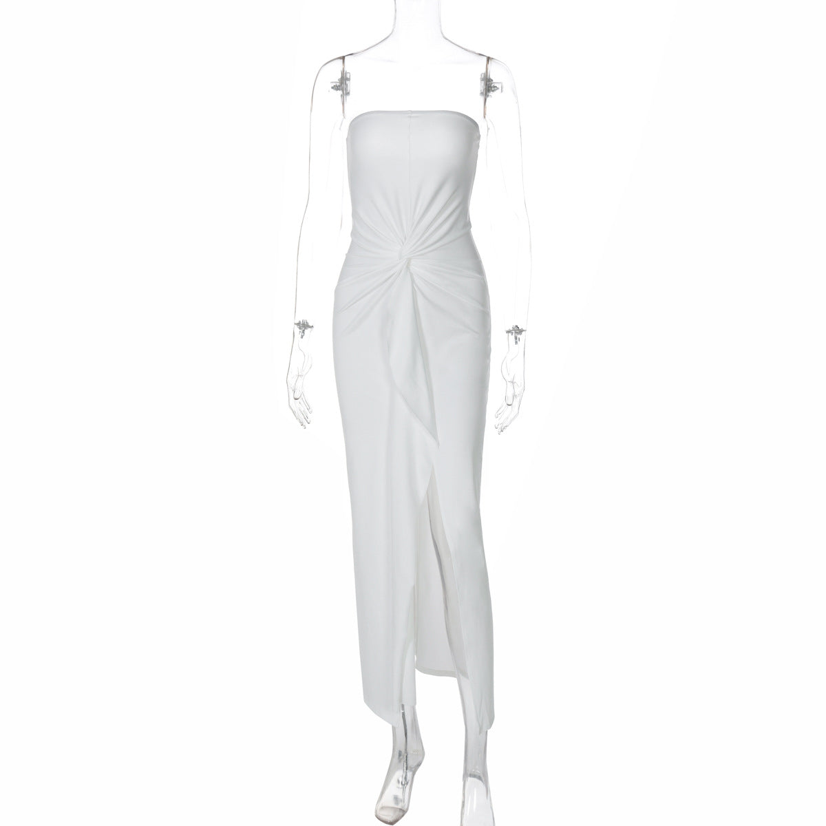 Women Clothing Tube Top Dress Winter Solid Color Sexy Pleated Slim Fit Dress